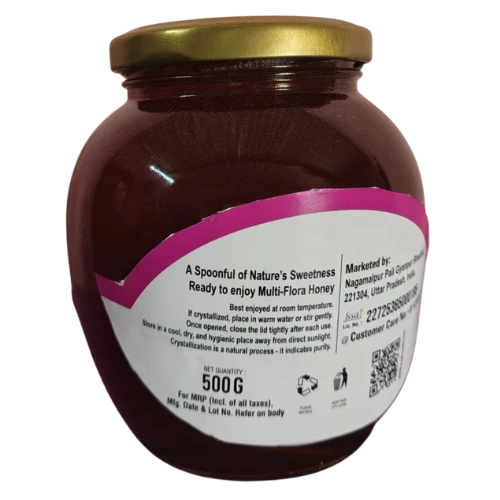 Multi Flora Honey is a blend of pure, sealed honeys collected from multiple seasonal flowers available with us. It combines the taste, aroma, and health benefits of many floral varieties in one jar.